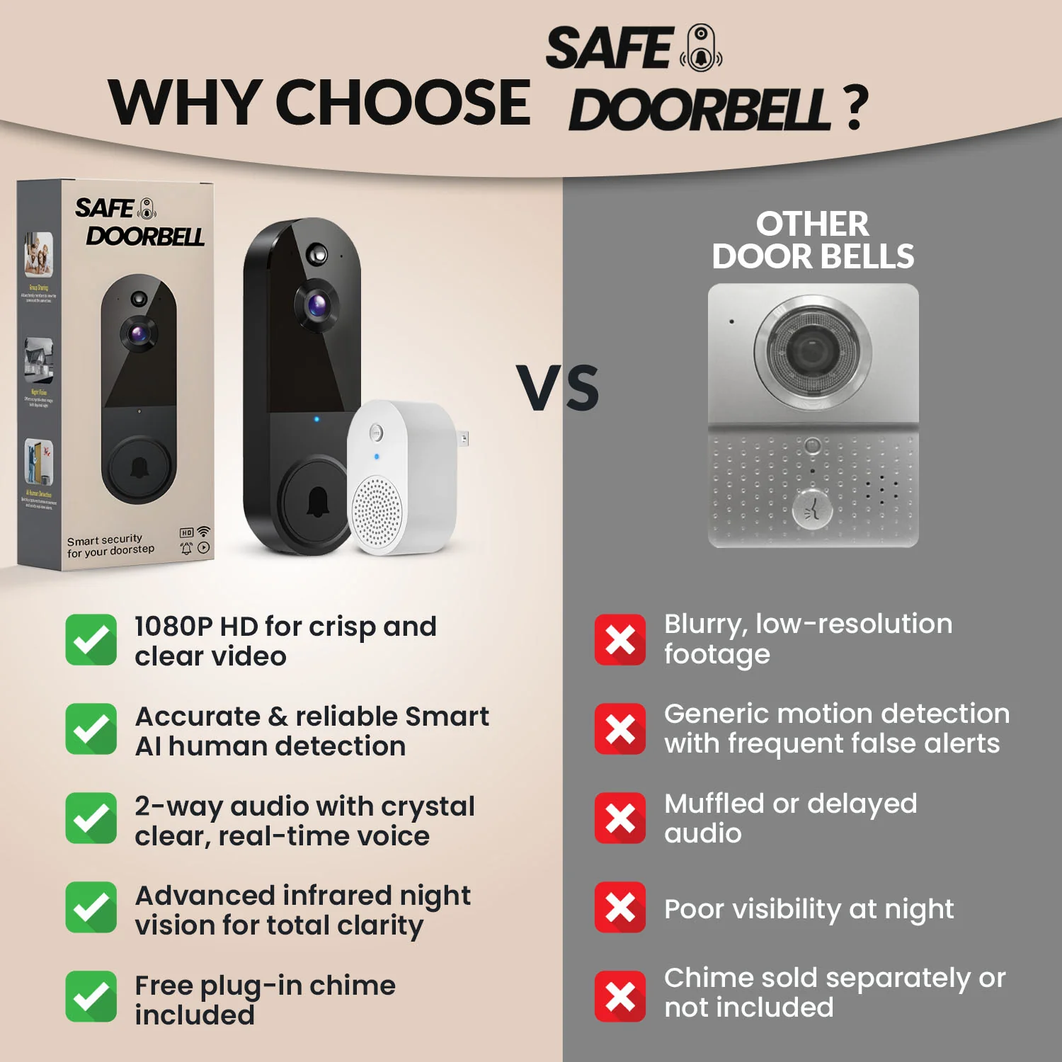 With SafeDoorbell, you’ll never miss an important visitor or package again! Our smart Wi-Fi doorbell gives you instant video access and two-way talk, so you can answer the door even when you're miles away.